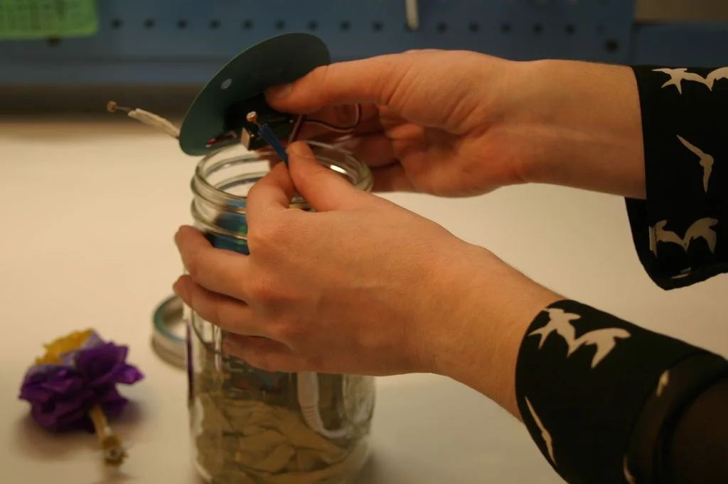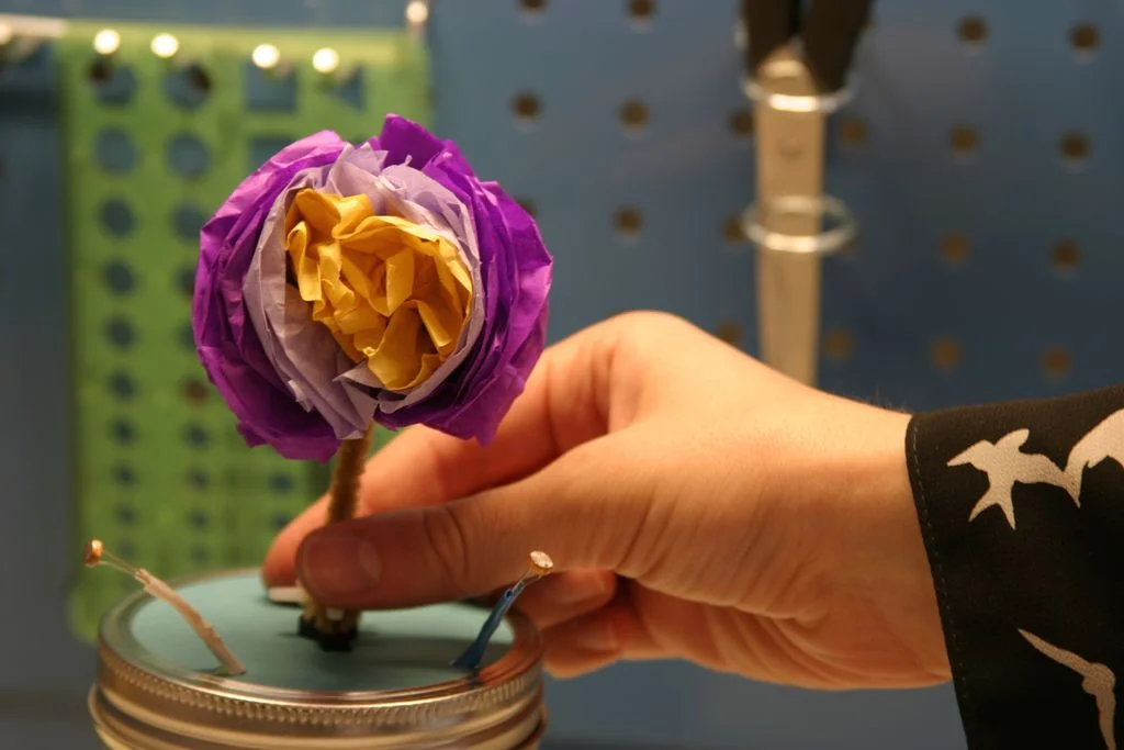 My aim was to use inexpensive, accessible craft materials like tissue paper, pipe cleaners, and a mason jar. Full directions are in this Instructable.